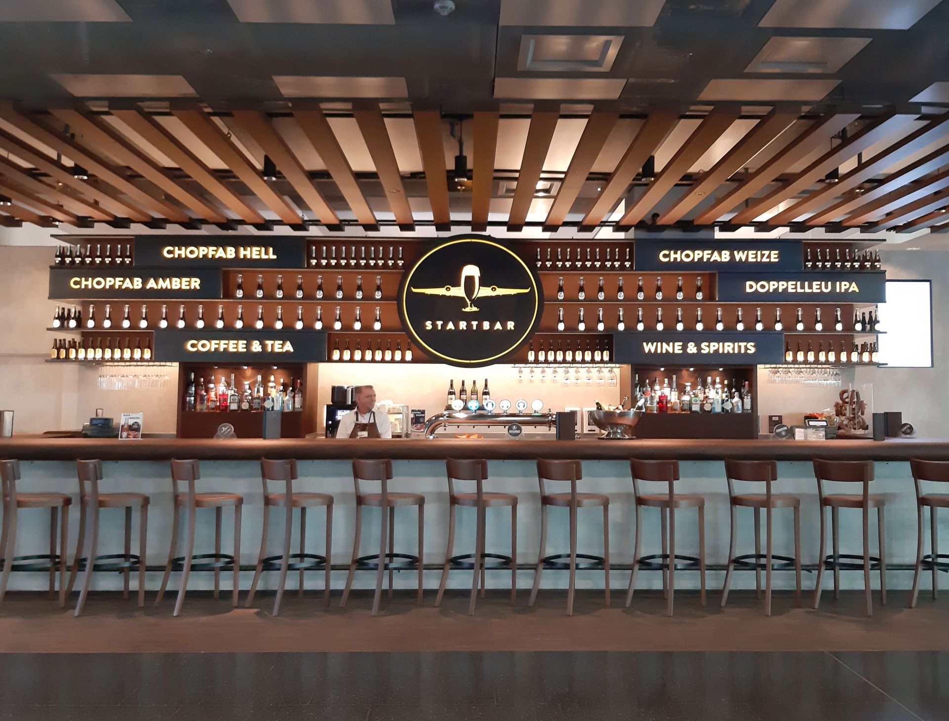 Startbar am Flughafen Zürich, Gates D - das ist gemütliches Barambiente mit einem Hauch von Moderne und industriellem Design: Das Herzstück der Startbar ist die grosse Auswahl an Bieren aus der Region. Ein wechselndes, saisonales Spezialitätenbier ergänzt das Angebot.