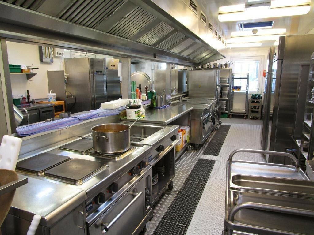 Die Produktion mit Diätküche, Kalter Küche und einer kleinen Patisserie sind ebenso wie die Abwäscherei, die gekühlten und ungekühlten Lager, Sozialräume, die Anlieferung und die Entsorgung in 10 Containern angesiedelt. Ein Service-Office zur Sicherstellung der Zimmerservice-Leistungen ist ebenso im Provisorium angesiedelt.