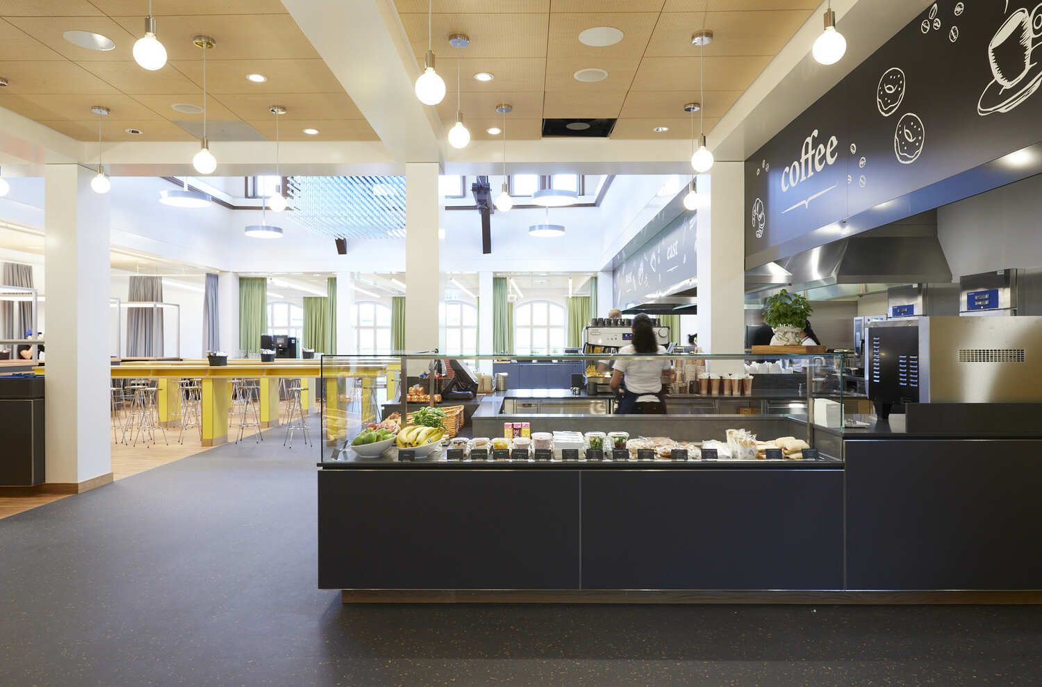 Um den Campus-Essgewohnheiten Rechnung zu tragen, setzt das Kulinarik-Konzept auf schmackhaften und unkomplizierten Streetfood aus Ost und West, ausgegeben auf Tellern oder im Take-Away Geschirr. Das Restaurant ist als Thekenkonzept ausgelegt mit zwei Streetfood-Countern und einer Deli-Theke. Die Gäste wählen ihre warmen Speisen und Getränke am Mittag an der bevorzugten Themen-Ausgabe. Die Deli-Theke ist ganztags geöffnet und bietet ein auf die Tageszeit abgestimmtes Angebot vom Power Food Müesli über Sandwich und Wrap hin zu Salaten, Backwaren und vielen anderen portionierten Leckereien.