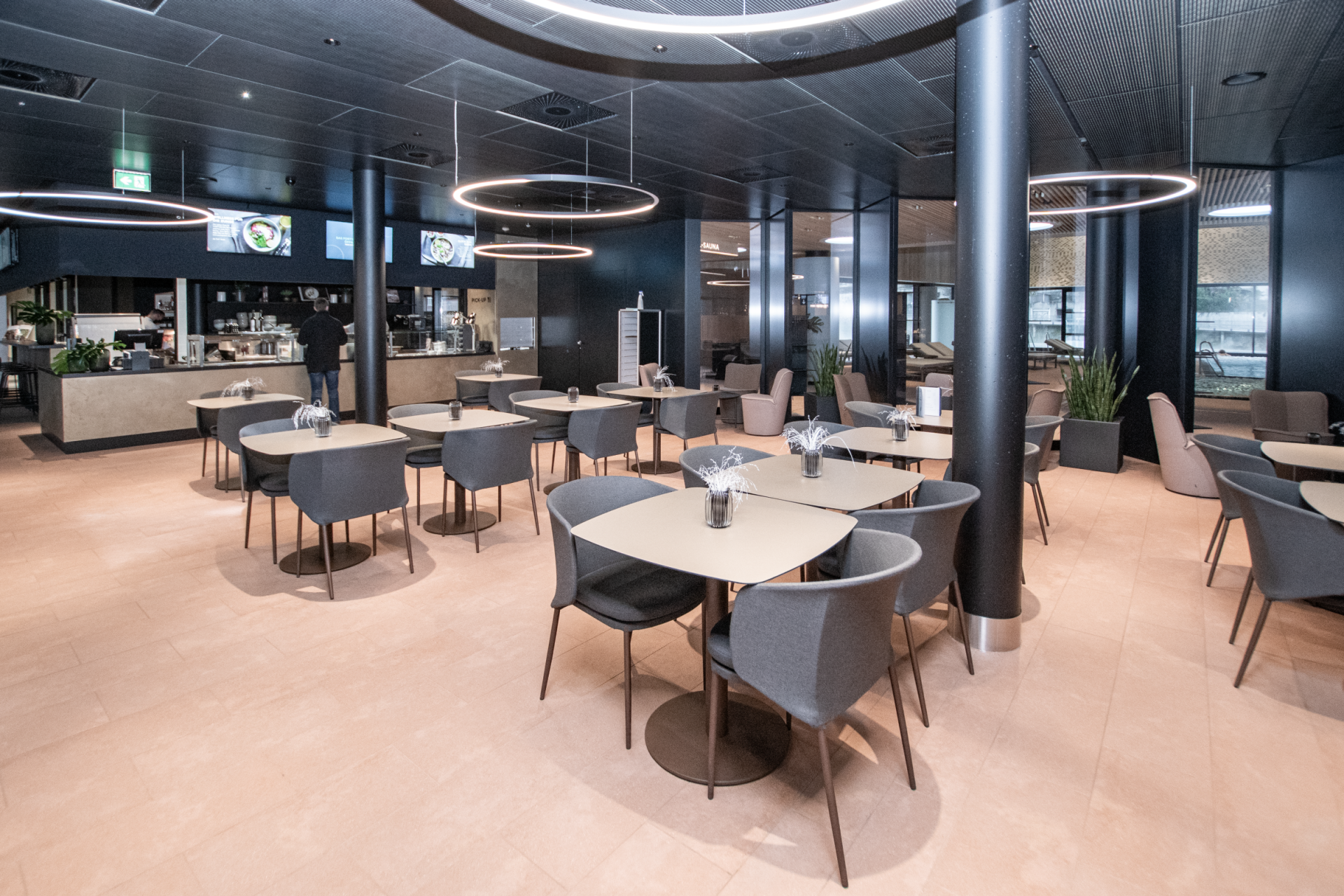 Die neue Gastronomie ist eine Bereicherung und ein Anziehungspunkt für das neue Thermalbad. Platziert am Haupteingang, ist sie mitverantwortlich für den ersten Eindruck, welchen der Gast beim Betreten des Bades erhält. promaFox AG ist überzeugt, dass die Gastronomie des "Fortyseven" zum neuen Treffpunkt im Bäderquartier Baden werden wird.