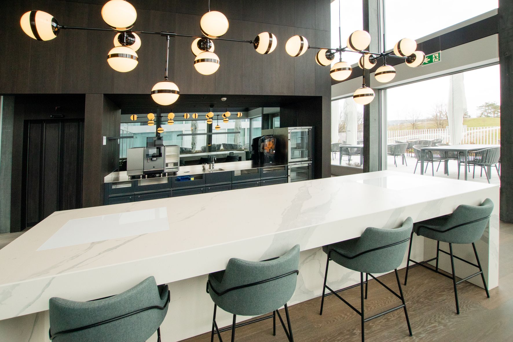 Mit einer offenen Showküche mit einsehbarem Josper Holzkohleofen als Highlight und einer imposanten hinterleuchteten Baranlage wurden einzigartige Anziehungspunkte und Eye-Catcher geschaffen. Mit internen Erschliessungskorridoren können zahlreiche Synergien zwischen den Hotels u.a. in den Bereichen Anlieferung, Lagerhaltung und Vorbereiten/Rüsten genutzt werden.