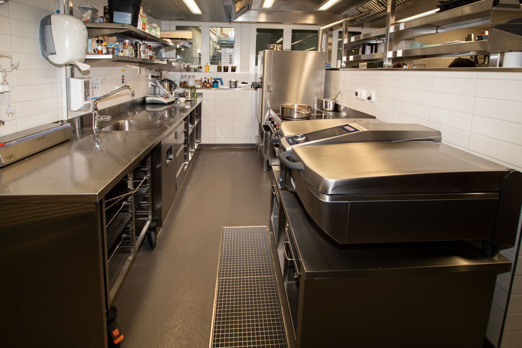 Neben der Auslegung einer kompakten Produktionsküche im Untergeschoss, welche den Anforderungen und Bedürfnissen des neu ausgerichteten Restaurantkonzepts entspricht, einer Strommenge, welche den zukünftigen Bedarf nicht decken konnte, war die Planung des Holzgrills die grösste Herausforderung. Die Integration des Holzgrills in die komplexe Gebäudestruktur verlangte eine enge Zusammenarbeit mit der Architektur, Haustechnik und Grillbauer.